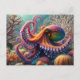 Une pieuvre vibrante glisse gracieusement à travers un océan bleu clair, affichant un éventail fascinant de couleurs sur sa peau. Ses tentacules, ornées de motifs complexes de rouges, de violets, de bleus et de verts, se tortillent et se courbent en mouvements élégants, reflétant la lumière dans des teintes chatoyantes. Chaque bras est recouvert de rangées de suceurs délicats, ajoutant texture et détail à sa forme dynamique. Les yeux expressifs de la pieuvre, pleins de curiosité et d'intelligence, se distinguent par son corps coloré. La scène capte la pieuvre dans toute sa beauté et sa fluidité, créant un spectacle captivant de la vie océanique et de couleurs vives.