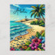 Aloha de notre carte postale de vacances. Jolie côte tropicale. Jolie eau bleue, palmiers, fleurs tropicales et phare en arrière - plan. Ai art fait dans un style pop art de la bande dessinée.