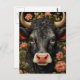 Carte Postale Vache noire aux cheveux bouclés dans les fleurs