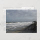 Des vagues roulent jusqu'à la rive à marée haute. Le soleil sur les vagues contraste avec le ciel avant-coureur.