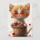 Carte Postale Valentine's Day Ginger Cat Basket Hearts