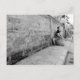 Carte postale avec photo en noir et blanc d'un vendeur de rue assis sur un haut mur. Cette photo a été prise à Sanur et fait partie de ma série de photos de Bali.