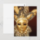 Carte postale personnalisable avec beau thème Renaissance vintage avec masque vénitien en jester doré.