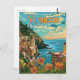 Une description captivante et nostalgique de Vernazza, un des villages pittoresques des Cinque Terre en Italie. Le design capte les maisons aux couleurs pastel vibrantes accrochées aux falaises, le charmant port rempli de bateaux de pêche et le littoral accidenté qui rencontre les eaux azurées de la mer Méditerranée. Rendu dans un style vintage, l'oeuvre évoque la beauté enchanteresse et le charme intemporel de Vernazza, invitant les spectateurs à explorer ses vues pittoresques et sa richesse culturelle.