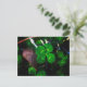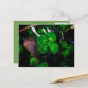Cette carte postale présente une photo d'un trèfle vert à quatre feuilles, symbole de chance et parfait pour la Saint Patrick.