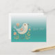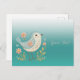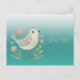Belle carte postale verte avec broderie florale de petit oiseau