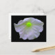 Cette jolie carte postale présente une photo d'une fleur de pétunia manipulée pour rendre le centre de la fleur vert brillant. Les pétales extérieurs sont blancs et les veines qui sortent du centre de la fleur brillent aussi de vert. La fleur est sur un arrière - plan noir pour la faire ressortir.