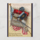 Cette carte postale présente une carte postale patriotique vintage avec le drapeau américain drapé derrière le chapeau et l'équipement d'un soldat. Crédit photo : Ewan Traveler, 2006.