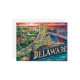 Explorez le charme du Delaware avec cette illustration conceptuelle captivante et vibrante qui présente les grandes villes, les monuments et les paysages naturels, y compris l'emblématique pont commémoratif du Delaware. La police attrayante et le design énergique invitations spectateurs pour plonger dans la beauté et l'histoire de l'état.