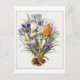 Cette carte postale est une reproduction d'une illustration vintage montrant des crocus printaniers.