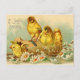 Une carte postale vintage de Pâques avec quatre adorables poussins.