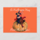 Jolie sorcière vintage qui embrasse son chat avec un message, "A Halloween Hug From Me To You", en fait une grande carte postale à envoyer pour Halloween !