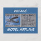 Modèle vintage avion "Miss Tiny" avec des informations descriptives des plans de modèle originaux. Dessiné par John Muir, vérifié par Barney Snyder