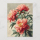La carte postale vintage présente une scène captivante de pivoines verdoyantes en pleine floraison, leurs teintes vibrantes capturant l'essence d'une époque révolue. Les pétales délicats présentent un éventail de roses et de blancs, créant un mélange harmonieux qui rayonne d'une beauté intemporelle. L'arrière - plan évoque un écrin de jardin rustique, avec des touches de vert défraîchi et de subtiles nuances sépia, ajoutant un charme nostalgique à l'ensemble. Les bords de la carte postale portent la douce usure du temps, témoignage de son voyage à travers les années.