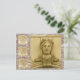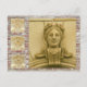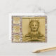 Façades architecturales de plusieurs bâtiments. Sur le côté gauche de la carte se trouvent trois petites images de détails de keystone (têtes de moines). La majeure partie de la carte montre une image plus grande d'une tête de femme avec une couronne feutrée d'olivier. Toutes les images sont encadrées de briques horizontales en argile rouge.