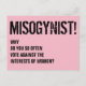 MISOGYNISTE ! Pourquoi votez-vous si souvent contre les intérêts des femmes ? Les membres du Congrès nous montrent qui ils sont par leur vote. Tant de membres du Congrès votent régulièrement contre les droits fondamentaux des femmes, y compris, mais pas uniquement, la santé des femmes. Ils déservent les soins de santé des femmes et rendent difficile le choix en matière de reproduction tout en supprimant les programmes d'aide aux mères et aux enfants. Il est temps de commencer à appeler ces législateurs pour qui et ce qu'ils sont, les misogynes. 20% du produit du concepteur sera donné à la Parenthood Planifiée.