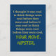 On peut y lire : "Je pensais qu'il était cool de penser que les choses étaient cool avant qu'elles ne soient cool avant qu'il soit cool de penser que les choses étaient cool avant qu'elles ne soient cool." Ou quelque chose comme ça. Parce que, les hipsters. Et l'ironie.