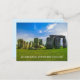 Venez à Stonehenge avec cette carte postale entièrement personnalisable. Cette carte présente le mystérieux monument circulaire en pierre lors d'une journée ensoleillée, avec de l'herbe verte vibrante. L'impressionnant monument préhistorique se trouve à Amesbury, Wiltshire, Angleterre. Le site archéologique reste une destination de voyage prisée pour les amateurs de sites du patrimoine mondial, de ruines et de sépultures antiques, et d'histoire anglaise. Le côté inverse de la carte est bleu clair par défaut avec une minuscule image d'accent Stonehenge au centre inférieur. Il y a un endroit pour personnaliser la carte avec votre propre texte, le texte par défaut lit Stonehenge, Wiltshire England en caractères blancs. Il suffit d'appuyer sur le bouton Personnaliser pour modifier ou supprimer du texte, ou d'appuyer sur le bouton Modifier pour modifier la police, la couleur de police ou la couleur inverse. Idéal pour les voyageurs, les amateurs d'Angleterre, d'Europe, les sites de monuments anciens, scrapbooking, mementos, et les amateurs de cartes postales de voyage rêveur.