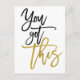 Donnez un coup de pouce à quelqu'un et envoyez-lui une carte postale avec un message d'encouragement! Ceci a des mots de motivation Vous avez ceci en or et en typographie noire contre un arrière - plan blanc qui peut être changé en une couleur différente si vous le souhaitez.