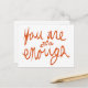De notre collection d'affirmations positives, cette carte postale vous rappellera, ainsi qu'à tout le monde, que vous êtes suffisant.