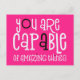 Typographie tendance avec une citation encourageante Vous êtes capable de choses Extraordinaires en blanc avec une touche de noir sur un arrière - plan rose chaud. L'arrière - plan rose peut être changé en couleur si vous le souhaitez.