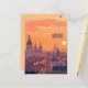 Cette carte postale de voyage présente une illustration sereine et chaleureuse représentant l'horizon de Madrid. Il s'agit d'une carte postale romantique pour les voyageurs qui ont l'intention de visiter Madrid ou pour ceux qui ont voyagé Madrid et qui envoient une carte postale à leur famille ou à leurs amis.