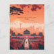 Cette carte postale de voyage présente une illustration sereine et chaleureuse représentant le paysage urbain de Pékin avec un vieux temple et des tours de ville. Il s'agit d'une carte postale idéale pour les voyageurs qui ont l'intention de se rendre à Pékin ou pour ceux qui ont voyagé à Pékin et qui envoient une carte postale à leur famille ou à leurs amis.