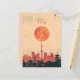 Cette carte postale de voyage présente une illustration sereine et chaleureuse représentant la ligne d'horizon de Tokyo avec un soleil orange. C'est une carte postale formidable et romantique pour les voyageurs qui prévoient de visiter Tokyo ou pour ceux qui ont voyagé à Tokyo et qui envoient une carte postale à leur famille ou à leurs amis.