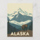 Cette illustration graphique incarne un style d'art vectoriel avec sa simplicité et son absence de détails complexes, rappelant les classiques affiches de voyage vintage. C'est le souvenir parfait d'une aventure en Alaska, un cadeau idéal pour les amateurs de faune, ou une pièce étonnante d'art rétro.