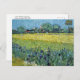 Une carte postale avec le tableau, Vue d'Arles avec des Iris (1888) par l'artiste néerlandais Vincent van Gogh (1853-1890) Un beau paysage de champs de blé à côté d'une prairie et une rangée de fleurs d'iris au premier plan.