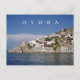 Une belle vue sur l'île d'Hydra en Grèce imprimée sur une carte postale.