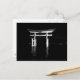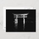 Photo en noir et blanc du grand torii debout dans la mer au sanctuaire d'Itsukushima sur l'île de Miyajima la nuit.