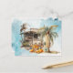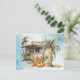 Plage Invitation Thanksgiving sur la plage avec palmiers et sable avec citrouilles et fleurs.