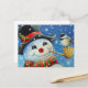Carte Postale Winter Snowman et Chickadee Bird Aquarelle Art