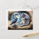 Carte Postale Wolf and Raven on Rock at Full Moon