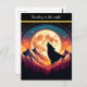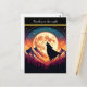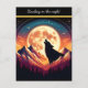 Un loup solitaire silhouette contre une pleine lune, hurlant dans la nuit, avec un ciel étoilé et des montagnes dans l'arrière - plan.