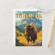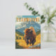 Cette carte postale de voyage de style rétro présente une illustration audacieuse et colorée d'un bison de Yellowstone. Situé sur fond de montagnes et d'un arrière - plan en pierre jaune vif, ce design minimaliste saisit l'essence de l'Ouest américain. Parfait pour les amoureux de la nature et les amateurs de design vintage.