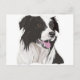 Ce dessin présente mon dessin d'un Collie Bordure Noire et Blanche, basé sur mon propre animal Gitan. C'est une pose caractéristique, qui montre son visage du côté, en train de pisser dans l'anticipation d'un jeu, aussi reflété dans ses doux yeux bruns.