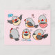 Carte Postale Zebra finch mignon dessin animé rose à damiers mot