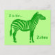 Carte Postale Zèbre - Tons de Lime Vert