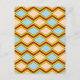 Des zigzags rouges et jaunes brillants entourent des diamants bleu clair et pêchent dans cet art/design abstrait coloré de Richard H. Fay.