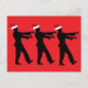 Des zombies en chapeaux rouges du Père Noël marchant dans la ligne avec les bras morts ou étirés devant eux. Une superbe carte postale de Noël zombie pour un fan d'horreur.
