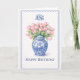 Célébrez-la avec le charme intemporel de l'esthétique Grandmillennial. Cette élégante carte d'anniversaire présente un vase à gingembre bleu et blanc classique de style chinoiserie rempli de tulipes roses douces. Avec sa bordure traditionnelle en coquille et sa typographie serif sophistiquée, c'est le choix idéal pour une mère, une sœur ou une amie qui aime le style prépa et classique. Entièrement personnalisable - ajoutez un monogramme ou un nom sur le devant et un message personnel à l'intérieur via l'outil de conception de Zazzle.