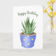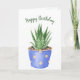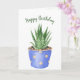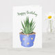 Plante succulent vert dans poêle à pois pour anniversaire. Le texte peut être modifié ou supprimé.