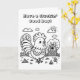 Une jolie carte de coloriage pour adultes pour dire bonjour à un ami. La page de coloriage est un coq sur une ferme avec un drôle de jeu de poulet, "juste du poulet sur vous".