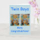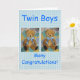 Deux mignonettes avec des arcs bleus sur en vichy arrière - plan et le texte Twin Boys Many Félicitations!