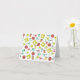Un carte pour notes à thème de couture composé d'une machine à coudre, de bobines de fil, d'un coussin d'épingle, de ciseaux, de nuances de tissu et d'aiguilles à coudre. Le design a une palette de couleurs rétro orange, jaune, rouge et bleu/turquoise.