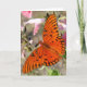 Le papillon de fritillaire de Golfe boit du nectar des fleurs roses de salvia sur ce carte pour notes