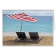 Carte pour notes Doté De Deux Transats Sous Et D'Un Parapluie À Rayures Rouge Et Blanc Sur La Plage À Montego Bay, Jamaïque. Photographie originale de Lianne K. Coleman
