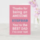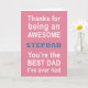 Une carte simple mais significative de la Fête du Père avec le texte, "Merci d’être un beau beau beau-père. Tu es le meilleur papa que j’aie jamais eu."